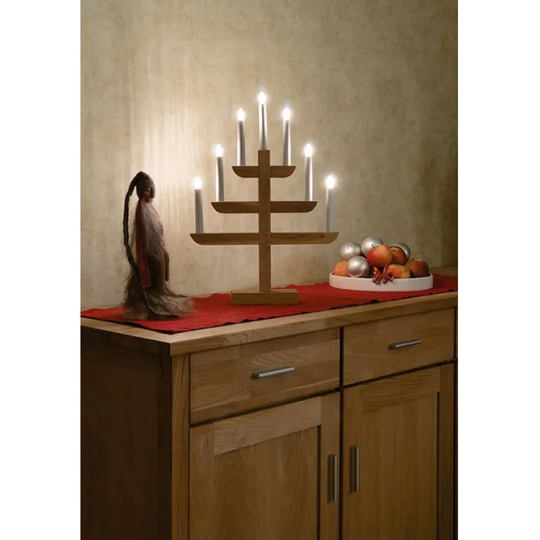 Konstsmide 2540-210 on 21W:n valkoinen sähkökynttelikkö, jossa on 7 valopistettä. Kynttilänjalan kirkkaus on 8 luumenia ja se on varustettu 170 cm: n pituisella johdolla, jossa on kytkin.