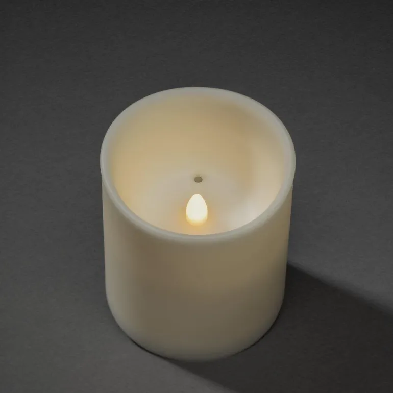 Paristokäyttöinen LED-vahakynttilä kermanvalkoisessa sävyssä ja 5 tunnin ajastimella. Valaisin on 10,1 cm korkea ja se toimii kahdella AA-paristolla ja tarjoaa miellyttävän valon pimeisiin iltoihin.