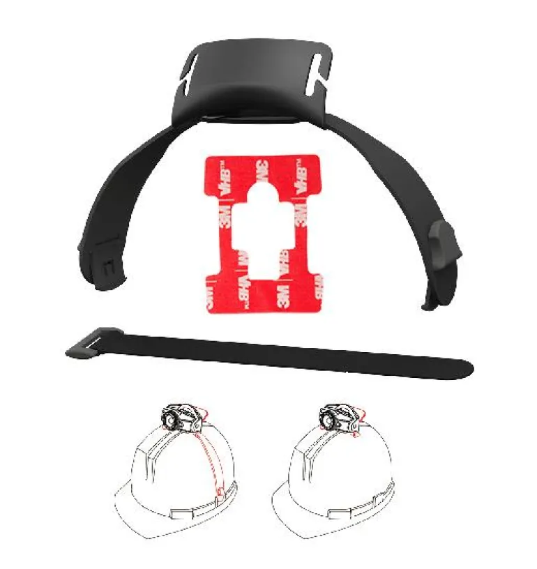 Kypäräkiinnityssarja liimapinnalla 90° kiinnitystä varten, kumihihna kiinnityksellä kypärän kuulokereikään ja tarranauha irtokiinnitykseen yläkiinnikkeeseen. Irtokiinnike sisältyy tavalliseen iH5R, iH9R ja iH11R -pakkaukseen.
