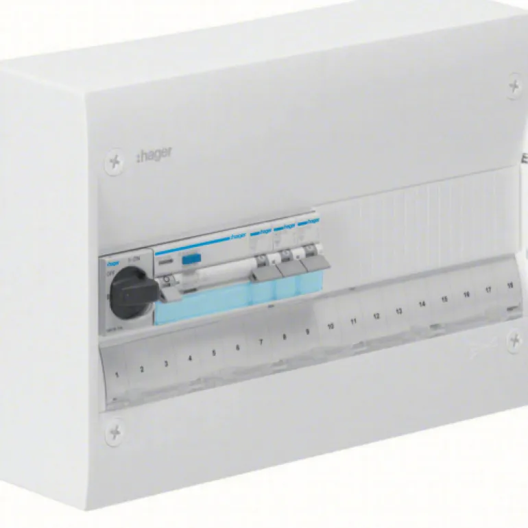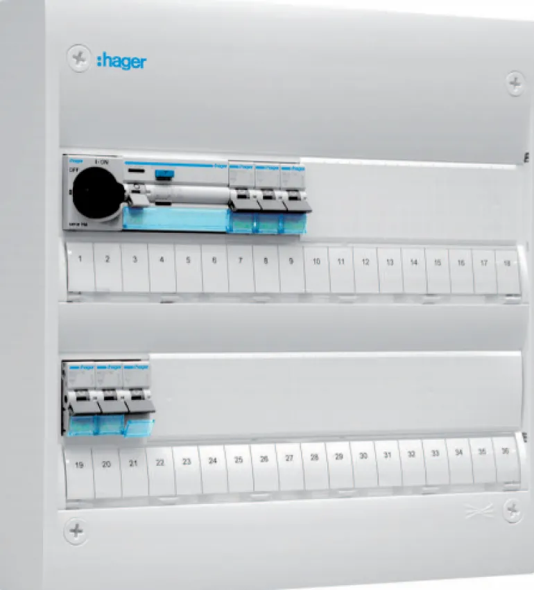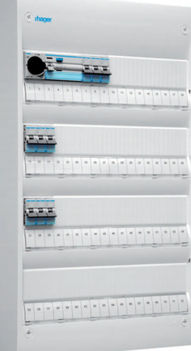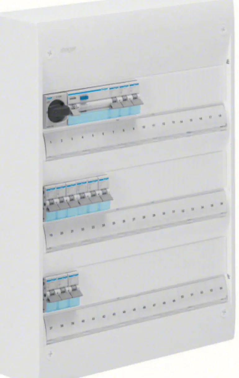 Esiasennettu kytkentäkaappi 13 ja 18 moduulin levyisenä. Sisältää: 1 kpl HB 40A, 1 kpl JFB 25A, 3 automaattisulaketta, 10A C-käyrällä, 6 kA/rivi. Keskukseen voidaan lisätä ovi ja takalevy (katso Gamma-lisävarusteet).