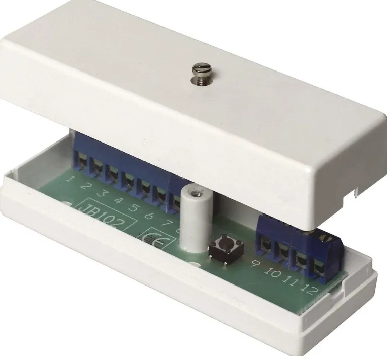 Kytkentärasia, ilkivaltasuojakytkin. Ruuviliittimet, joista 2 ilkivaltasuojakytkintä varten.