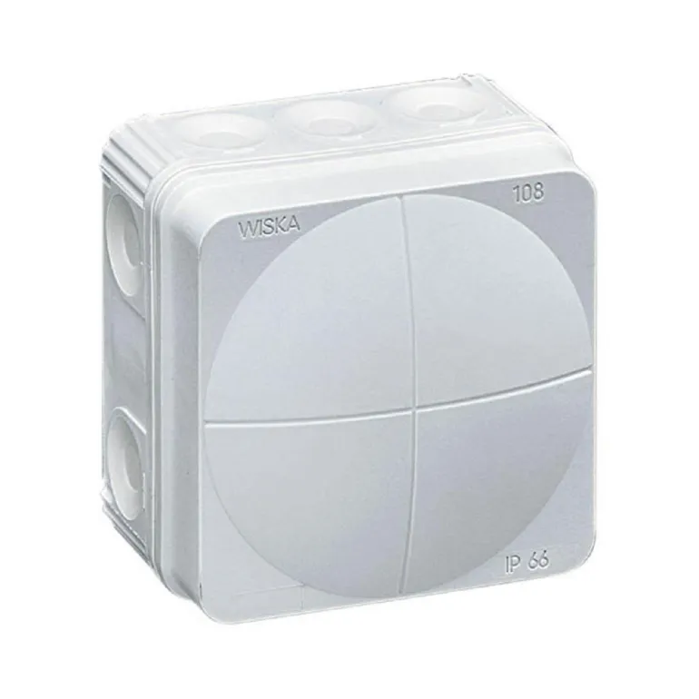 Kytkentärasia Combi 108. 12 itsestään tiivistyvää elastista kalvoa, joista 2 pohjassa. Napsautettava kansi. Iskunkestävä. Kestää UV-säteilyä.
