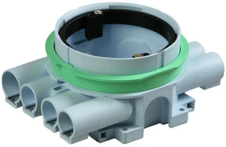 Kytkentärasia yksittäiselle tai kaksoiskipsilevylle, vihreä välirengas poistetaan, jos kyseessä on kaksoiskipsilevy. Rasiassa on säädettävä kiinnitysrengas. Viisi kiintonysää 16 mm:n putkille, joista kolme on auki, ja kaksi kiintonysää 20 mm:n putkille. Nysissä on lukituskielekkeet. Lisäksi sivuilla on kaksi puhkaistavaa aukkoa ja kaksi rasian pohjassa. Ruuvien väli 67 mm. Valmistettu halogeenittomasta materiaalista, täyttää standardin IEC/EN60670:2005 (850° C) mukaisen hehkulankatestin vaatimukset.