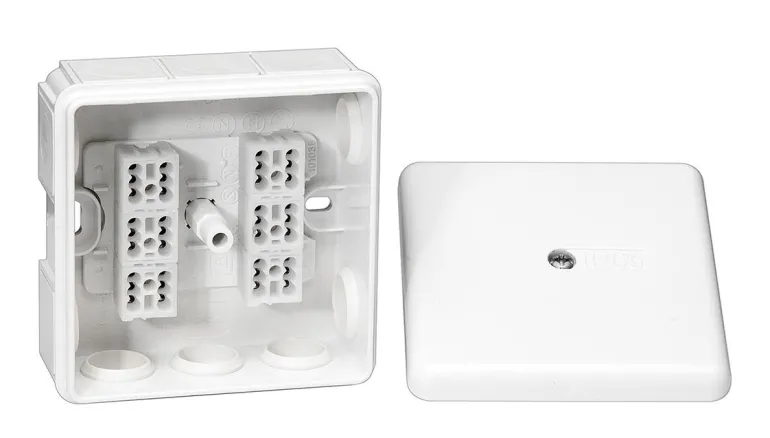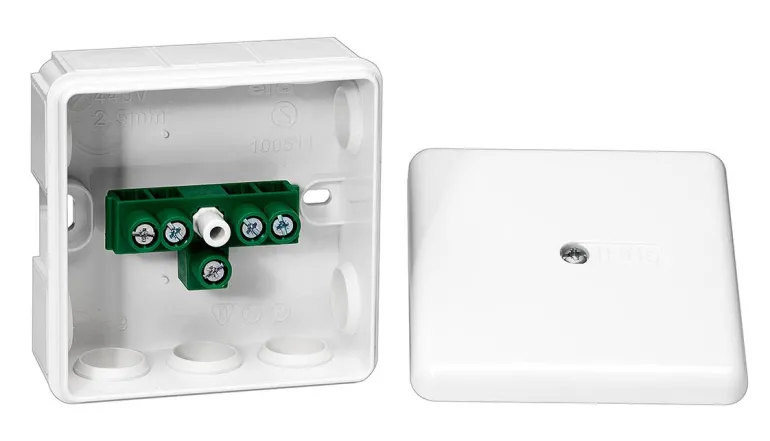 Kytkentärasia pinta-asennukseen, ruuvikiinnitteinen kansi. ilman liitäntälohkoa.