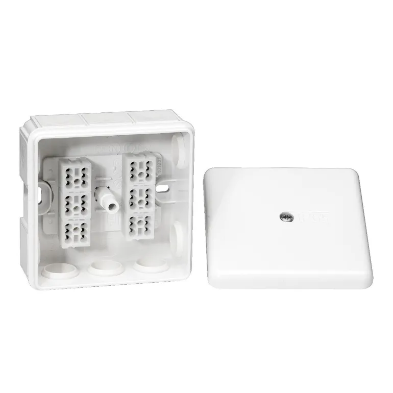 Kytkentärasia pinta-asennukseen, ruuvikiinnitteinen kansi. Varustettu 6-napaisella pikaliittimellä.