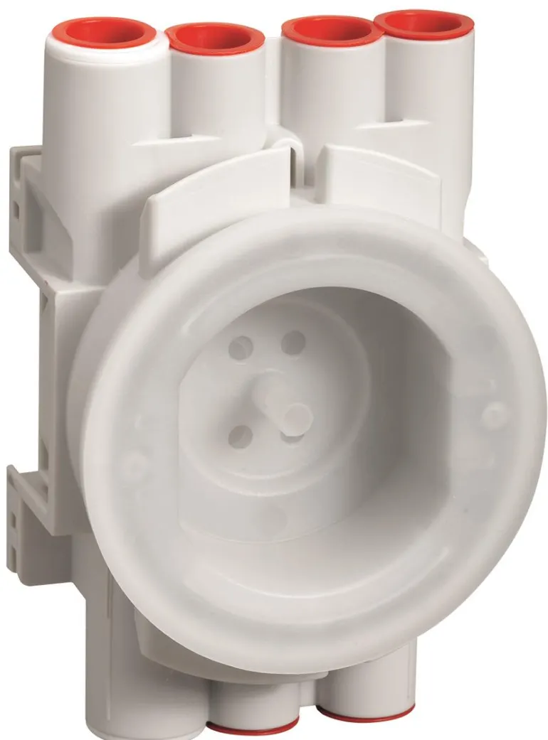 Kytkentärasia valettavaksi. Seitsemän nysää, joista kaksi 20 tai 16 mm ja loput 16 mm. Kaikissa nysissä tiivistelevyt.