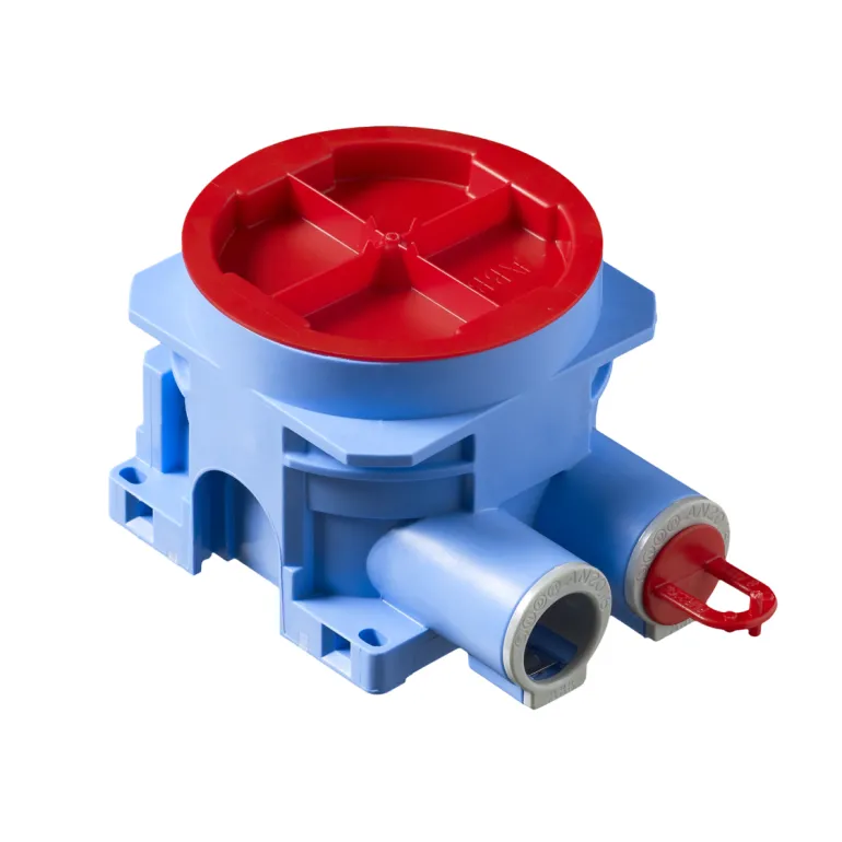 Kojerasia, jossa on pyörivä, portaattomasti säädettävä kiinnitysrengas, jolla rasian voi asentaa 13-27 mm paksuihin levyihin. Asennussyvyys on 55mm. Asennusrengasta voi kallistaa 0-4º. Kojerasiassa on kaksi 16/20 mm kokoista kiinteää liitinaukkoa. Rasian sivuilla ja alapuolella on neljä läpivientiaukkoa ja taustassa vielä kaksi 16 mm ja yksi 20 mm sisääntulo. Valmistettu halogeenittomasta materiaalista ja täyttää standardin IEC / EN60670 mukaisen hehkulankatestin vaatimukset: 2005 (850 °C).