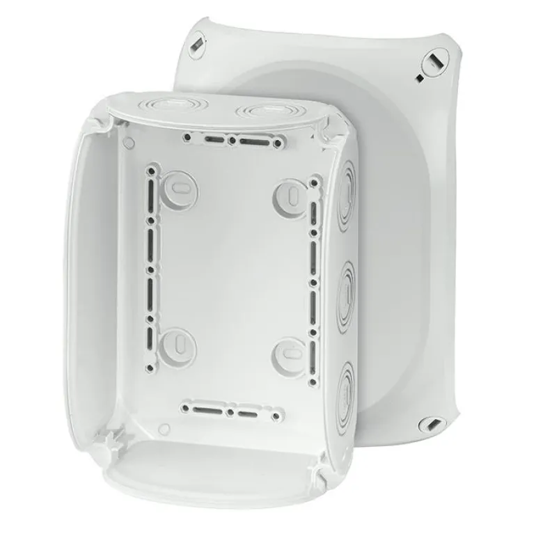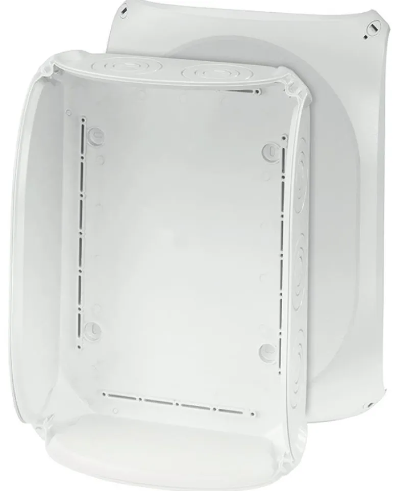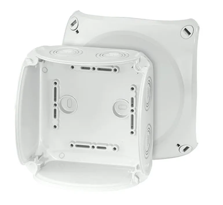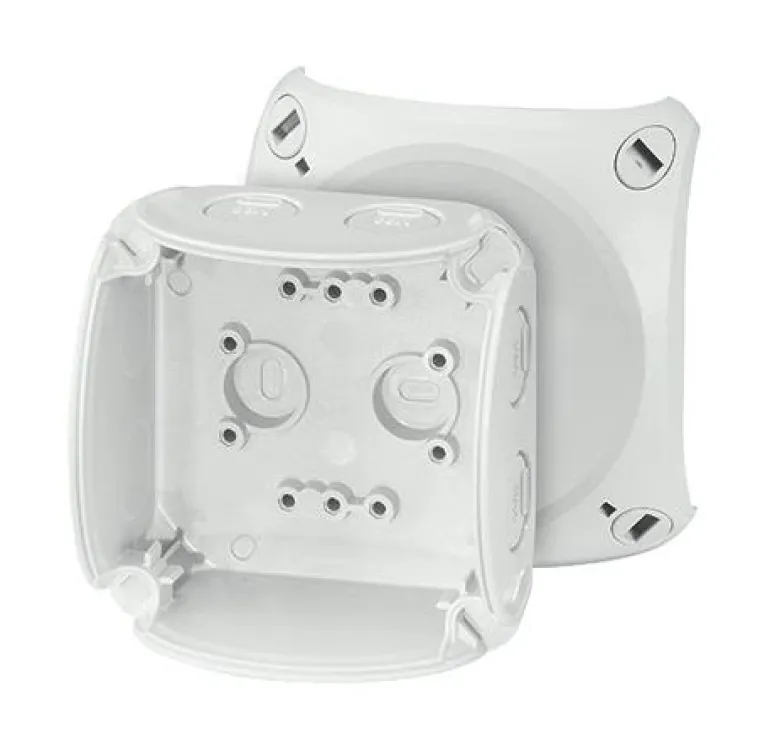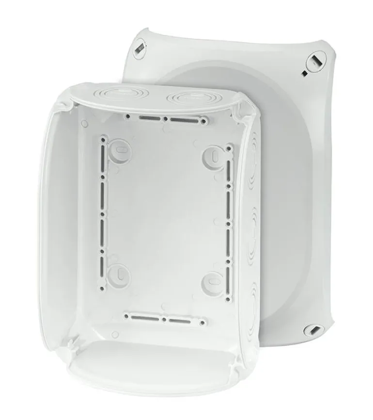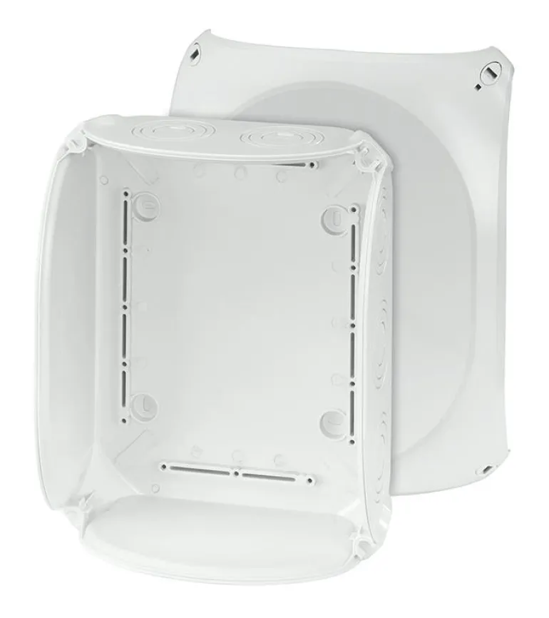 Kytkentärasia ilman liittimiä. Kannessa on pikalukitus ja näkyvä lukitusasento.