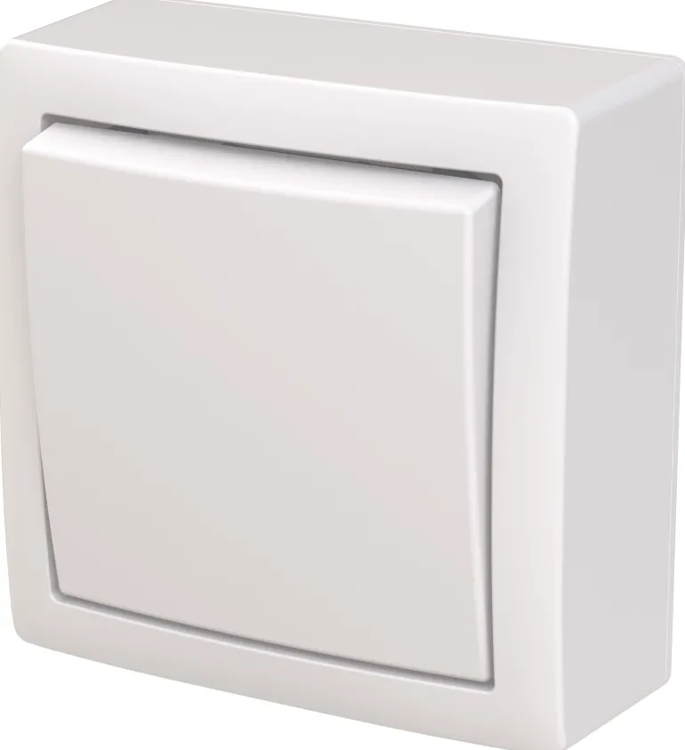 Pinta-asennettava kytkin jousikiinnitteisellä vivulla ja jousiliittimin. Liittimiin voi kytkeä max. 2 johdinta ja ne on hyväksytty ML- ja MK- johtimille. Lisäliittimiä voi käyttää johtimien jatkamiseen. SAGA™ tuotteen pohjaosan ja pintakehyksen valmistukseen on käytetty biopohjaista muovia.