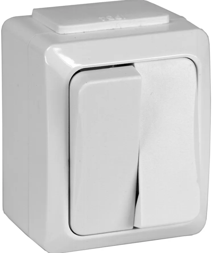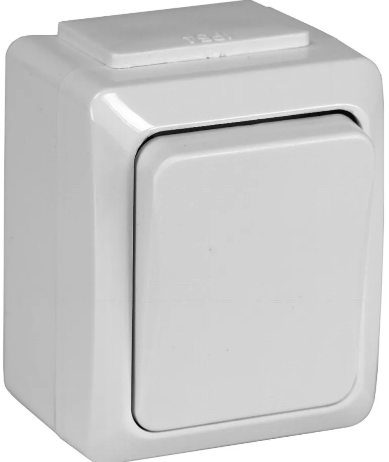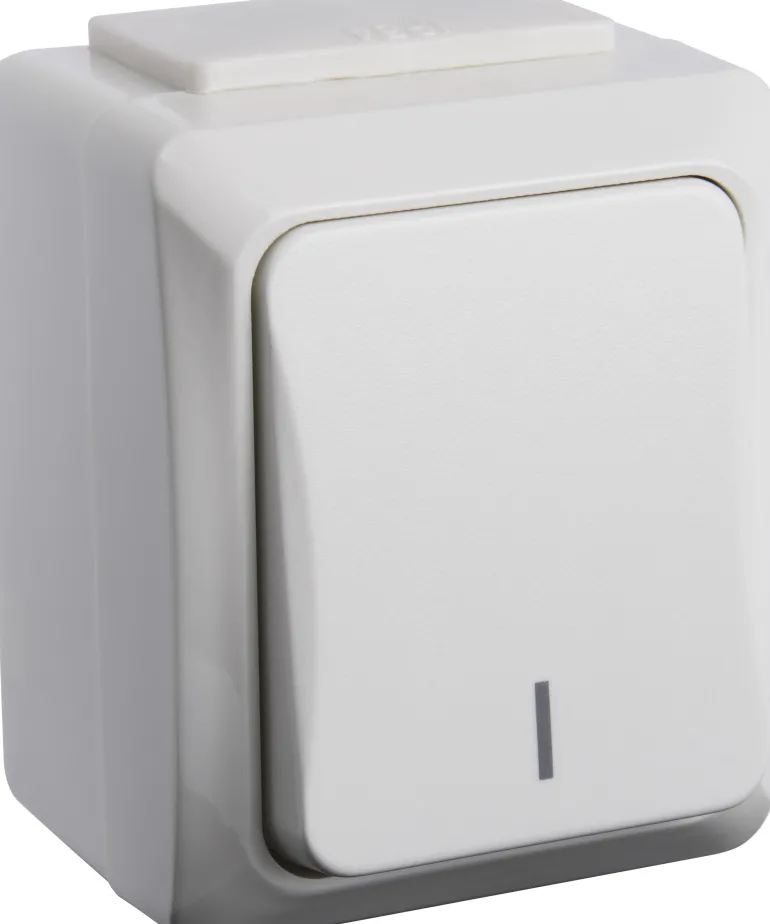 Pinta-asennettava kruunukytkin 10A/250V ja IP54 hyväksytty ulkokäyttöön.