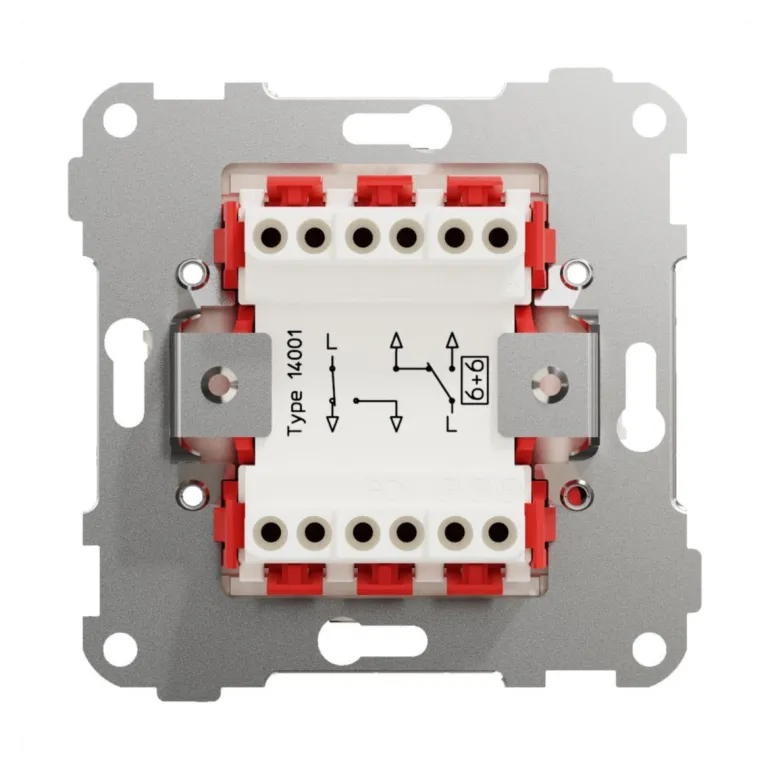 Elko Plus -sarjan kytkin, jonka pohja, painikkeet ja kehys halogeenitonta kestomuovia. Ruuvikiinnitys,
