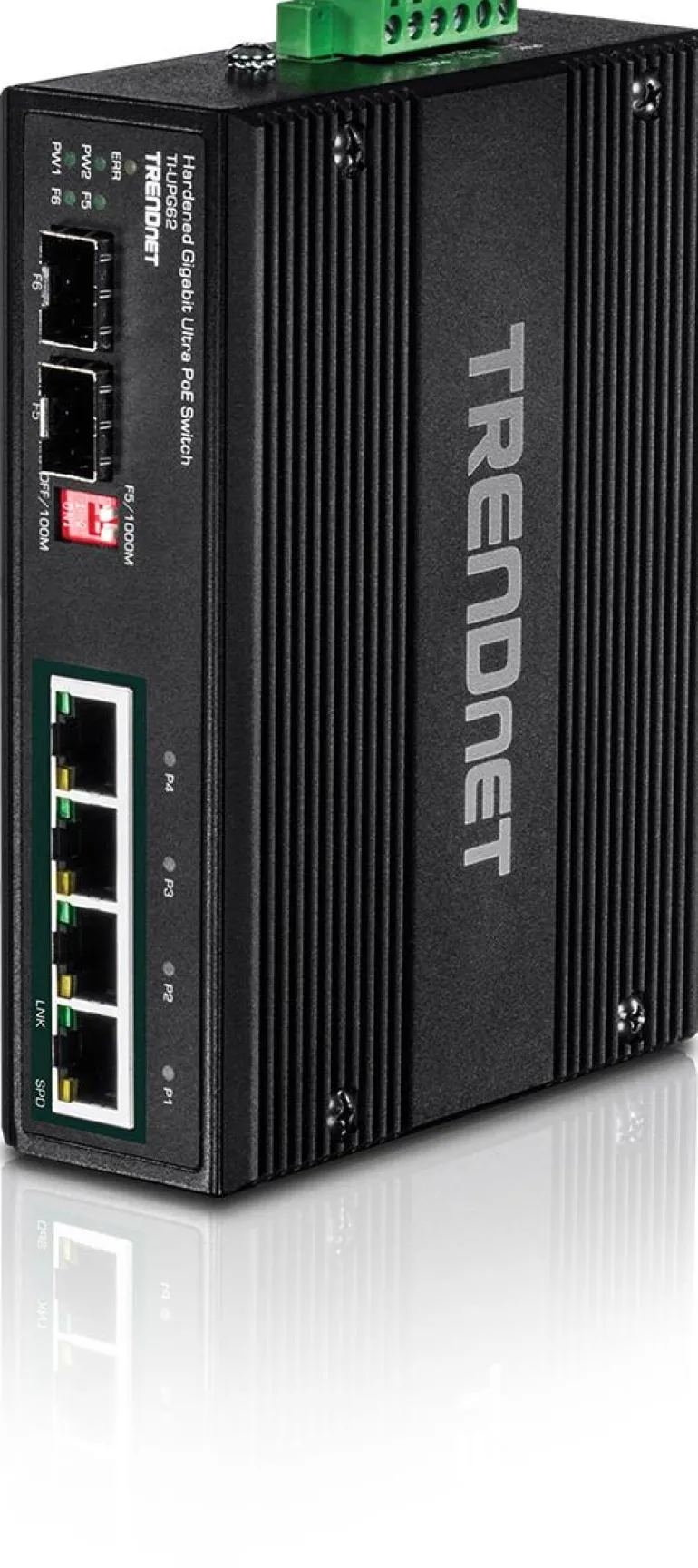 Industry Switch PoE-budjetilla 240W. Hälytysrele, lisäverkkoliitännät. Sisältää DIN- ja seinäkiinnikkeet. IP30, 8 KV ESD-suojaus. Lämpötila-alue -40 … +75 ºC. Virtalähde hankittava erikseen. Jännite 48–56 V DC. Virrankulutus enintään 5,67W. 3 vuoden takuu. Pakkauksessa: TI-UPG62, asennusohje, irrotettava liitinlohko, DIN-kisko-/ seinäasennussarja.