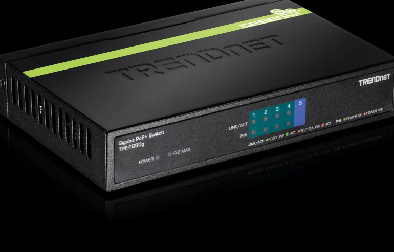 TRENDnet TPE-TG50g on tuulettimeton kytkin, jonka Plug and Play -toiminto helpottaa käyttöönottoa. Kytkin tarjoaa jopa 1000 Mbit/s full duplexin porttia kohden ja 16 Gbit/s:n kokonaiskytkentäkapasiteetin. PoE 15.4 ja PoE+ 30 W mahdollista porttia kohden.