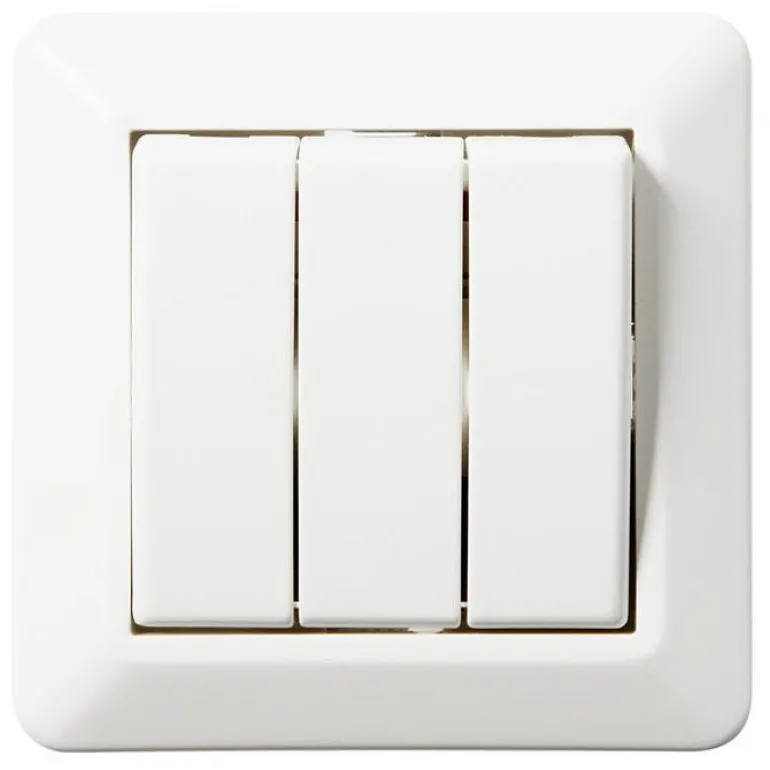 Kytkin kaksoisporrastuksella, pikaliitäntä ja koko 84 x 84 mm. Painettava kansirunko, joka voidaan myös kiinnittää ruuveilla, ja mahdollisuus asentaa impulssijouset painiketoiminnon luomiseksi. Nimellisjännite 250 V ja nimellisvirta 16 A.