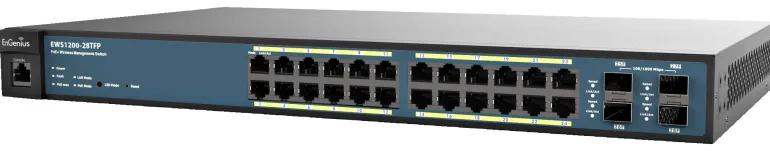 EnGenius EWS1200-28TFP on 24-porttinen + 4 SFP:n Gigabit Managed Smart Switch -älykytkin, jossa on verkkokonfigurointia ja valvontaa helpottava WLAN-ohjain sekä ezMaster™ Centraliserad Network Management Software. Se on tehokas mutta helppokäyttöinen verkkopohjainen työkalu.
