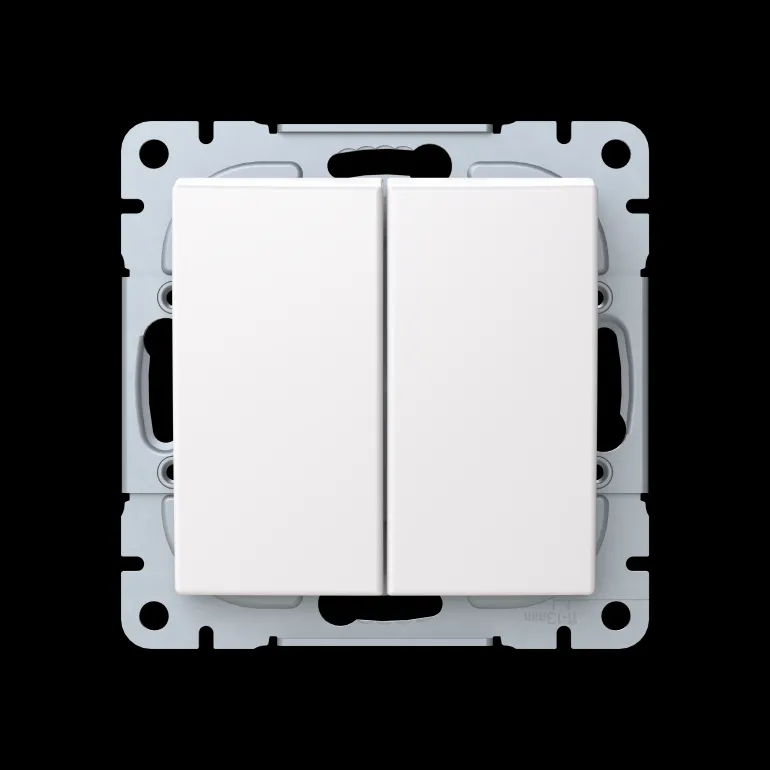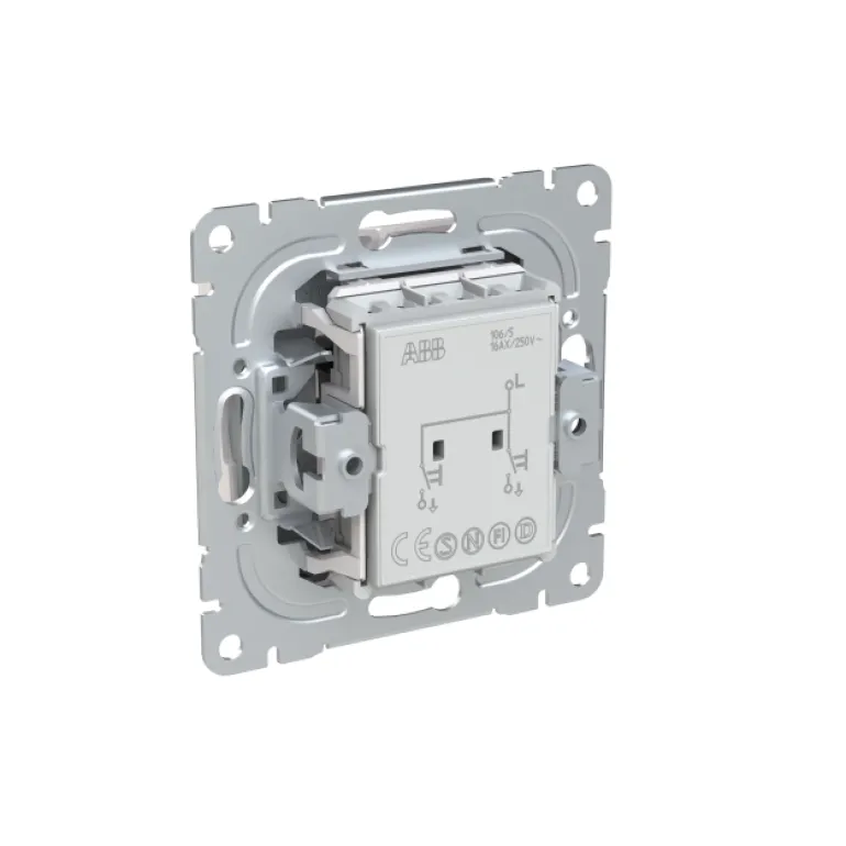 SAGA™-tuotesarjan uppoasennettava kytkin jousikiinnitteisellä vivulla ja jousiliittimin. Sisältää kytkimen rungon ja vivun. Liittimiin voi kytkeä max. 2 johdinta ja ne on hyväksytty ML- ja MK-johtimille. Muoviraaka-aineessa erittäin korkea UV-suojaus. Valkoinen RAL9003. Valmistettu ABB:n nettonolla-tehtaassa Suomessa. Pinta on kiiltävä ja helppo pitää puhtaana.