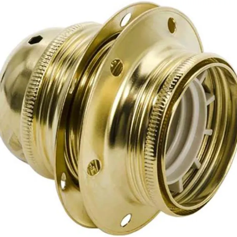 Kierteellinen lampunpidike kahdella varjostinrenkaalla ja eristyssarjalla . Pidike soveltuu esimerkiksi pöytä- ja kattovalaisimille. Maaruuvilla.