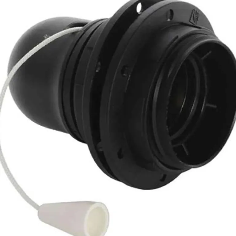 Kierteellinen lampunpidike vetokytkimellä, sopii esimerkiksi pöytä- ja kattovalaisimille.