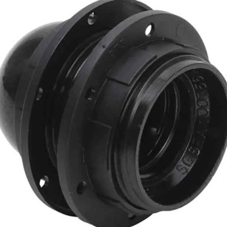 Kierteellinen lampunpidike kahdella varjostinrenkaalla ja eristyssarjalla . Pidike soveltuu esimerkiksi pöytä- ja kattovalaisimille. Maaruuvilla.