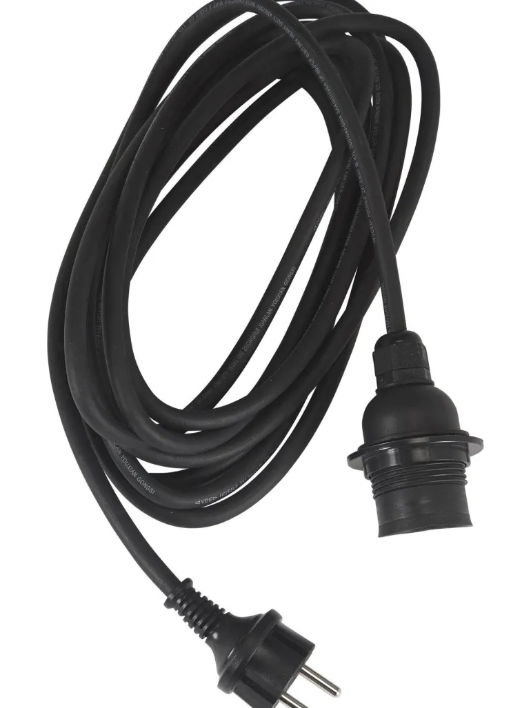 2,5 m lampunripustusjohto (IP44) hyväksytty ulkokäyttöön. E27-kanta valonlähteille, joiden maks. teho on 15 W.
