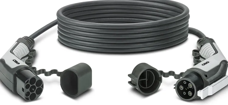 16 A: n latauskaapeli, jossa on ennaltaehkäisevä palosuojaus, tyyppi 1 – tyyppi 2. Tyypin 1 liitin autoon ja tyypin 2 liitin pylvääseen. 1-vaiheinen 250 V:n, 6 metrin suora kaapeli. Korkealaatuinen latauskaapeli, joka on tärkeä osa turvallista sähköasennusta.