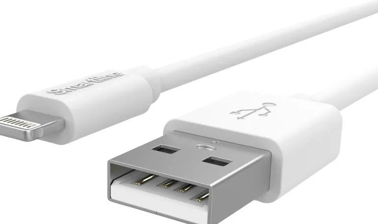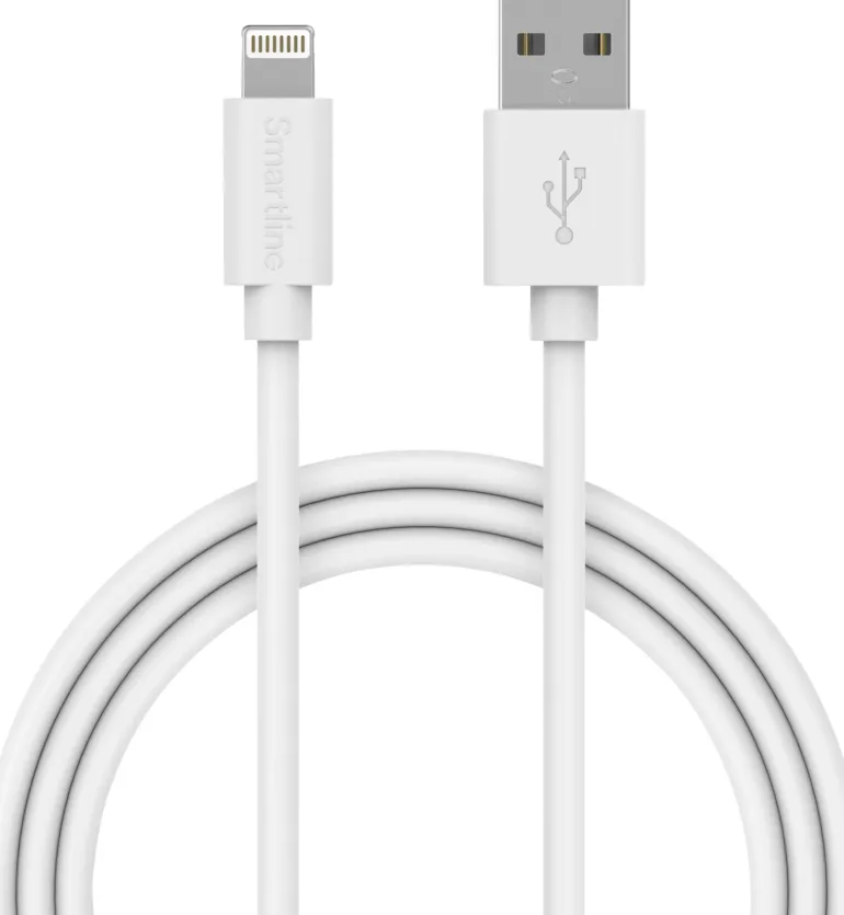 Lightning-kaapeli iPhonen ja iPadin lataamiseen ja synkronointiin Lightning-liittimen kanssa. Kaapelin toisessa päässä on USB-A-liitin, joka sopii seinälatauslaitteen, autolaturin tai varavirtalähteen USB-liitäntään.