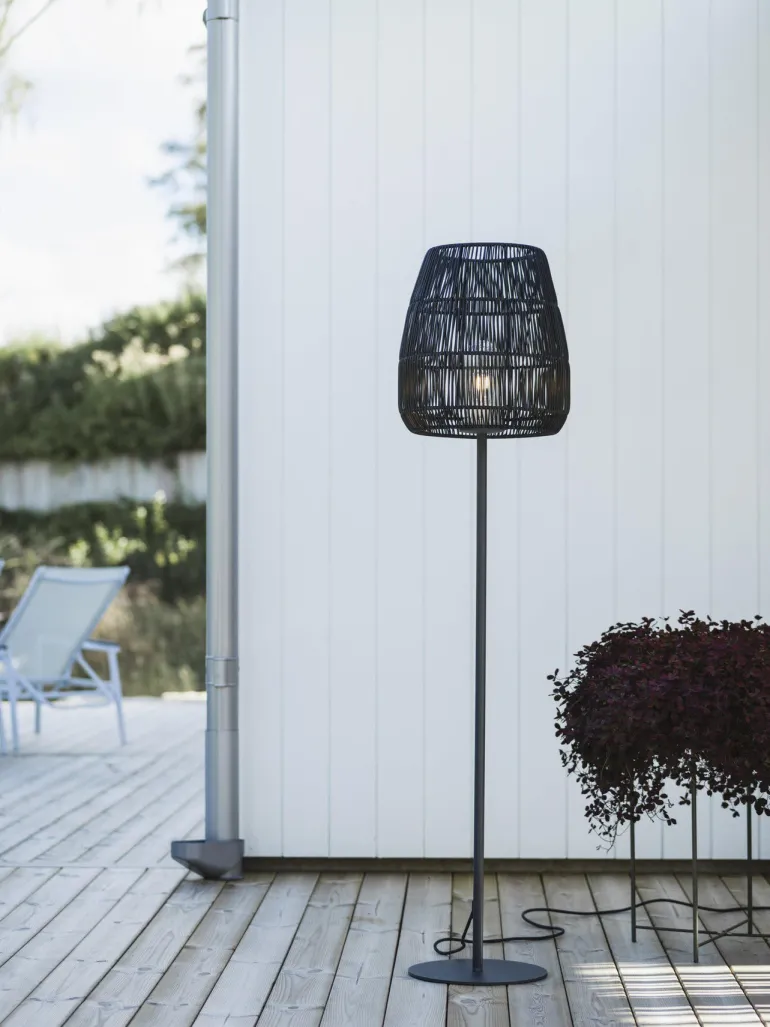 Lattiavalaisin Agnar, sisältäen mustan Saigon-varjostimen, jotka molemmat on suunniteltu ulkokäyttöön. Jalassa on E27-lampunkanta, johon sopii maks. 40 W valonlähde – suositeltu valonlähde PR Home 1806404 Elect Led Filament Edison Clear 64 mm. Valonlähteen ja lampun kannan päällä on valkoinen muovikansi ja tiiviste, jotka suojaavat kosteudelta. Varjostin kiinnitetään jalkaan erikoiskiinnikkeellä. Varjostin punottua säänkestävää polyrottinkia, joka luo kauniin valon. Johdon pituus 200 cm.