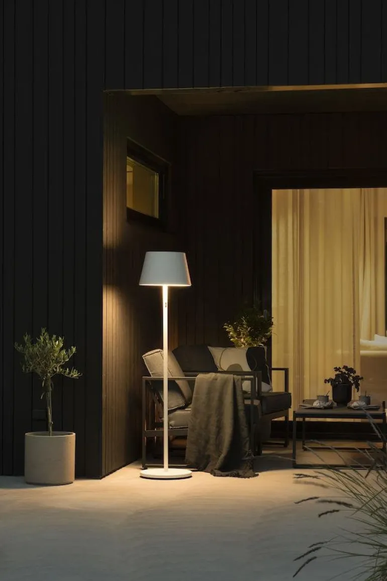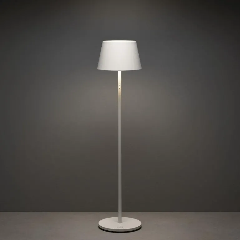 Konstsmide USB Touch 7824-250 Pomezia on valkoinen alumiininen lattiavalaisin. Lampussa on sisäänrakennettu himmennin, värilämpötila 2 700 K / 3 000 K / 4 000 K ja RGB-valo (punainen, vihreä, sininen). Lataus helposti USB:llä. Pomezia-lattiavalaisin on hyväksytty ulkokäyttöön.