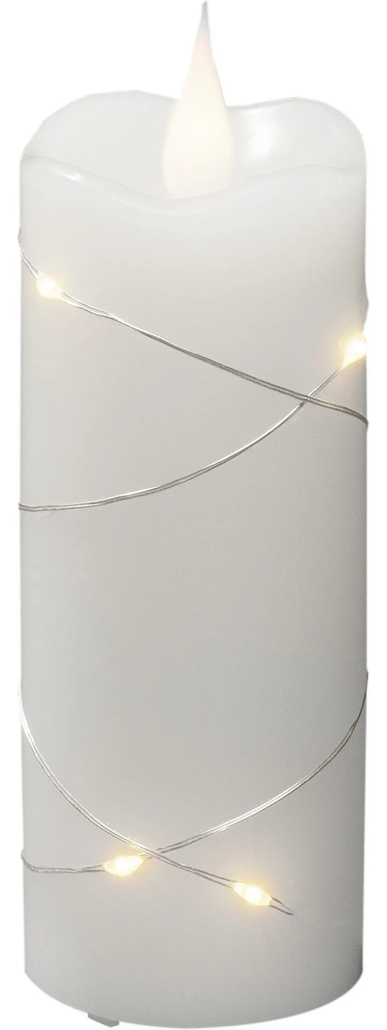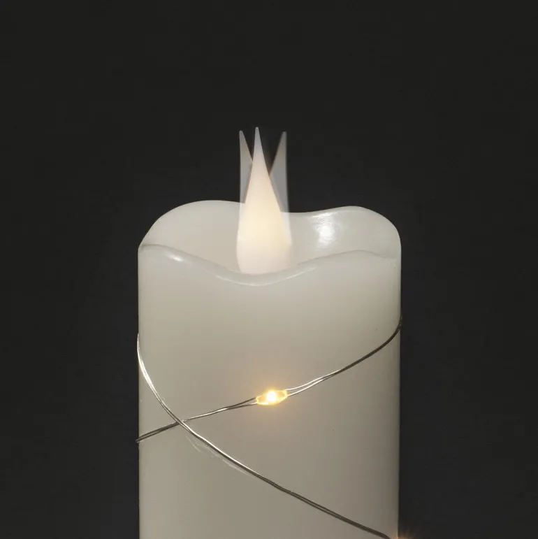 Konstsmide 1826-190 on valkoinen LED-vahakynttilä mikro-LEDeillä (lämpimän valkoinen), 5×17,8 cm. Ajastimella 4/8 h, 2xAA.
