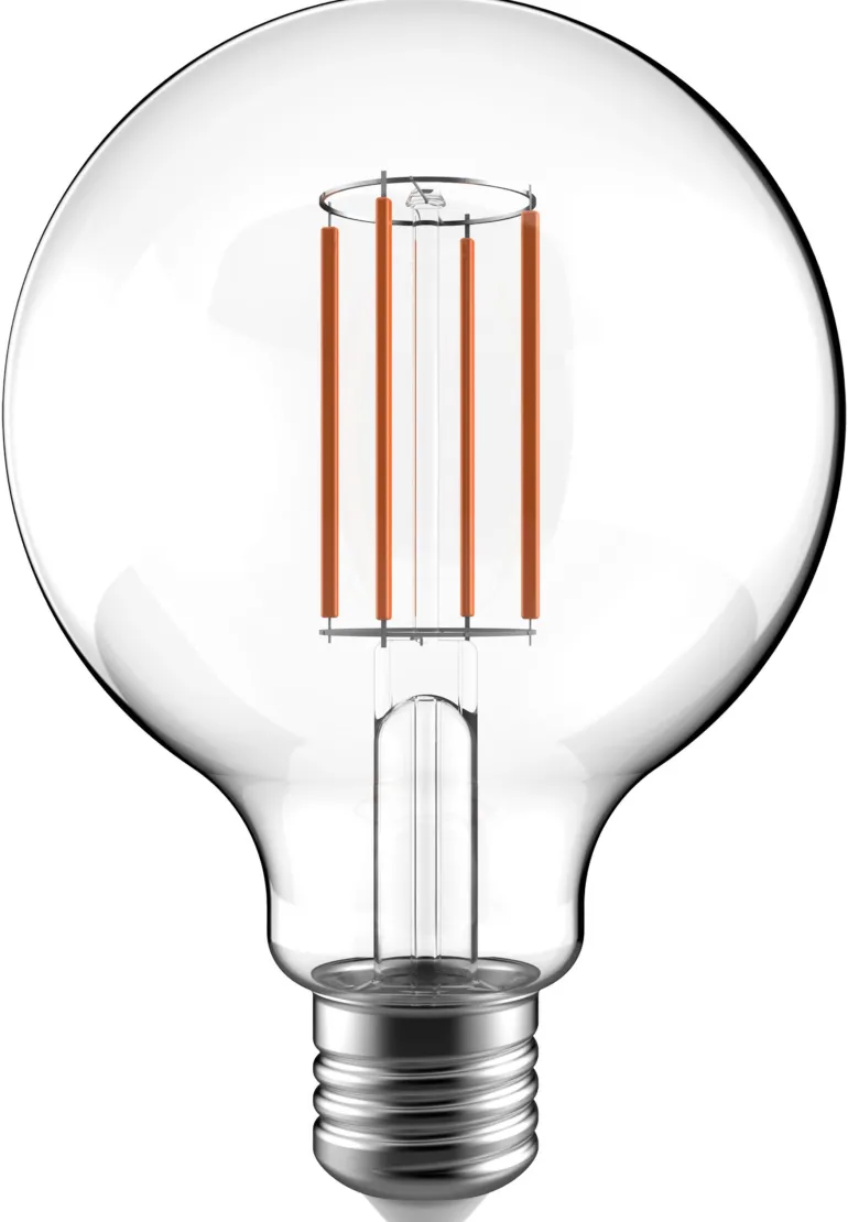 Kirkas pallokupuinen filamentti-LED-lamppu, joka soveltuu hyvin korvaamaan kirkkaat hehku- ja halogeenilamput. Lamppu antaa paljon valoa kannan suuntaan, ja sopii siksi erityisen hyvin valaisimiin, joissa lamppu on kanta alaspäin. Lamppu antaa tasaisen valkoisen (3000 K) valon ja on tyylikkääseen valaisinjohtoon yhdistettynä näyttävä sellaisenaan, ilman varjostinta.