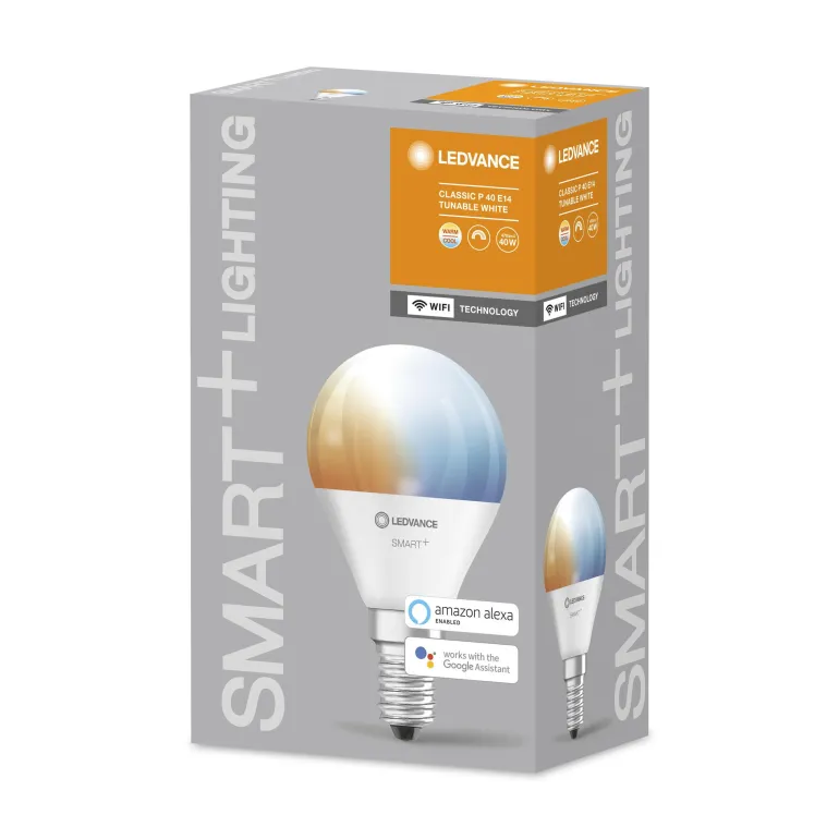 Ohjaus LEDVANCE SMART+ WiFi -sovelluksella, Android 4.4 tai iOS 9.0 tai uudempi. Valon ääniohjaus Google Assistantilla tai Amazon Alexalla.
