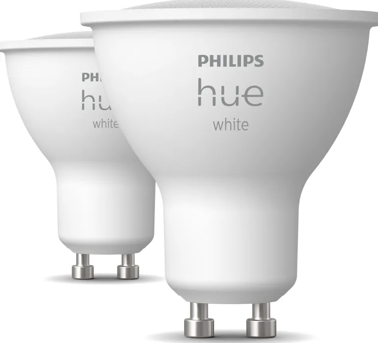 Philips Hue White -sarjan älykäs GU10 -kohdelamppu. Sopii kohdevalaisimiin ja tarjoaa mahdollisuuden älykkääseen valaistukseen kotona. Valonlähteessä on erittäin laaja himmennysalue ja paljon eri kirkkaustasoja, hyvin himmeästä valosta voimakkaaseen valoon. Sisältää 2 kpl White -sarjan GU10 -kohdelamppuja, jotka mahdollistavat helpon himmentämisen ilman lisäasennuksia.