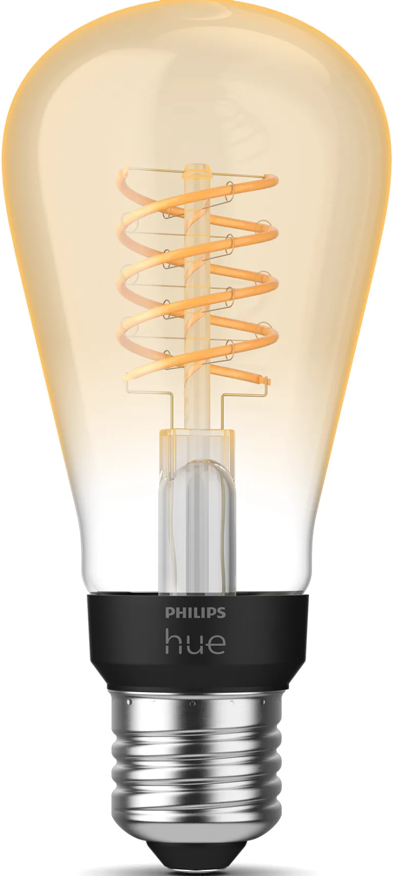 Hue White -sarja tarjoaa perustason älyvalaistustoiminnot ja mahdollistaa sekä laadukkaat valo-ominaisuudet että mahdollisuuden yhdistää lamput lisävarusteisiin, jotka mahdollistavat valonlähteiden ohjauksen niin kotona kuin poissa ollessasi. Valonlähde tuottaa pehmeää valkoista valoa, jota voidaan himmentää kirkkaasta päivänvalosta rauhalliseen yövaloon, ja näin kirkkaustasoa voidaan säätää tarpeen ja tilanteen mukaan. Edison-kupu selkeästi näkyvällä filamenttisisäkierukalla ja kirkkaalla lasilla. Lamppu yhdistää vintage-tyylisen ulkonäön Philips Hue -valaistuksen tarjoamiin ohjaus- ja himmennysmahdollisuuksiin.