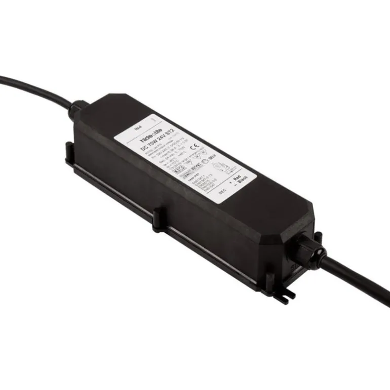 Hide-a-Lite 7980563 on LLED-muuntaja LED-valonlähteille, mukana oikosulkusuoja, ylikuormitussuoja ja ylikuumenemissuoja automaattisella uudelleenkäynnistyksellä. Toimitetaan 0,5 m: n valmiiksi kiinnitetyllä kaapelilla sekä ensisijaisella että toissijaisella puolella.