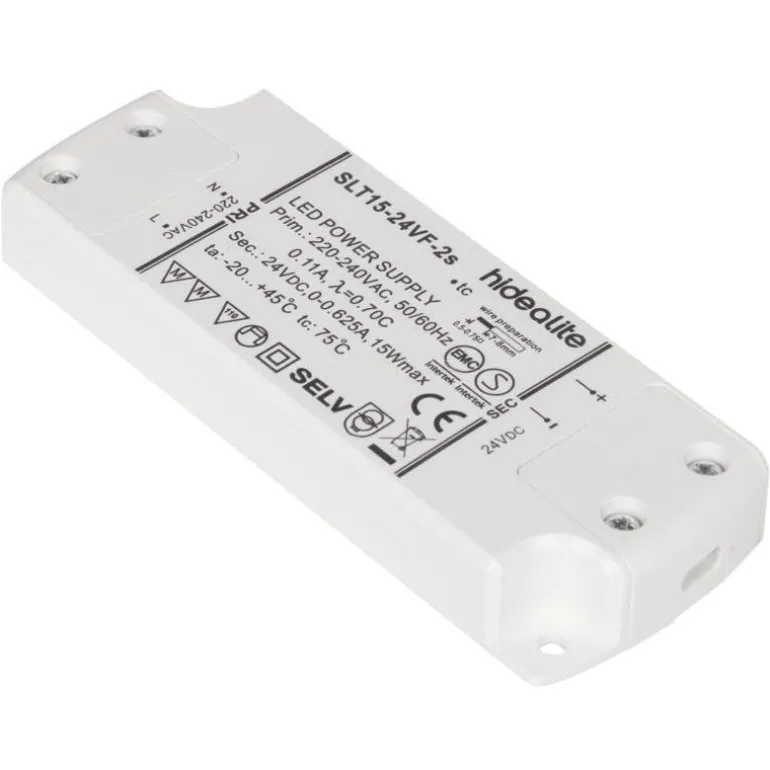 LED-muuntaja, joka on tarkoitettu käytettäväksi 24V LED-valonlähteiden kanssa. Sisäänrakennettu oikosulkusuoja, ylikuormitussuoja ja ylikuumenemissuoja automaattisella uudelleenkäynnistyksellä.