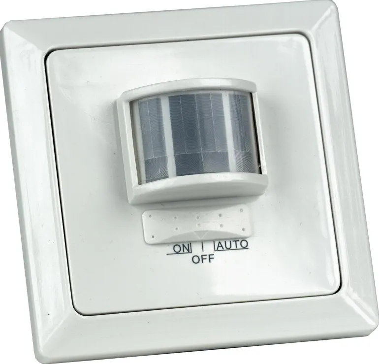 Liiketunnistin kytkimellä, kantama 8 m ja enimmäiskuormitus 500 W. Tarkoitettu hehkulampuille, uppoasennus.
