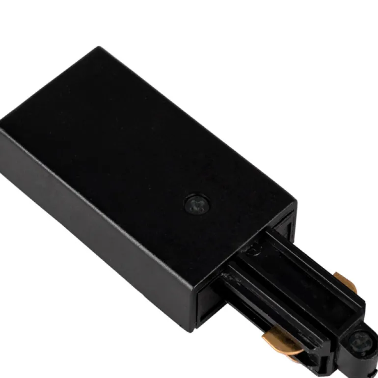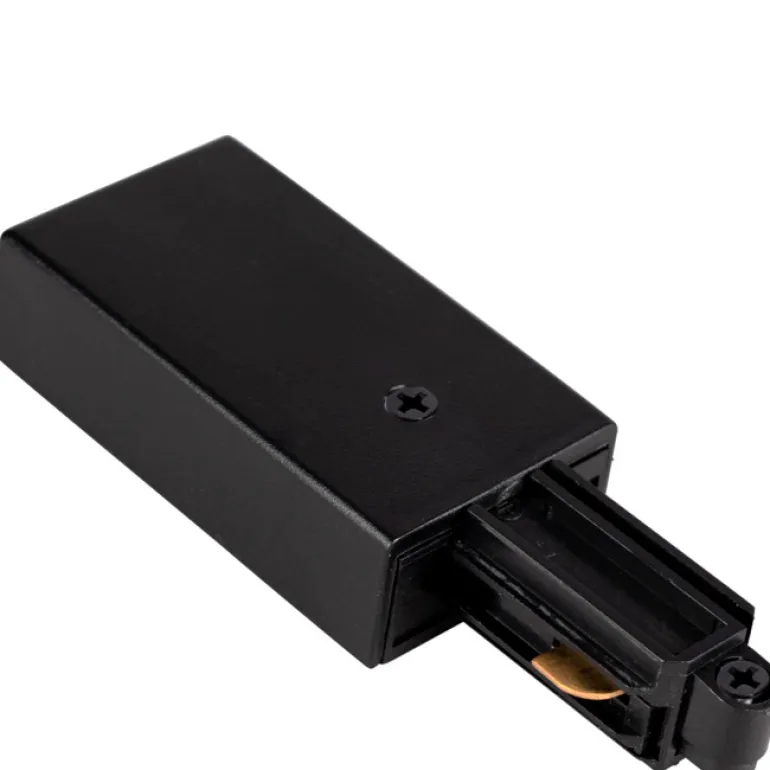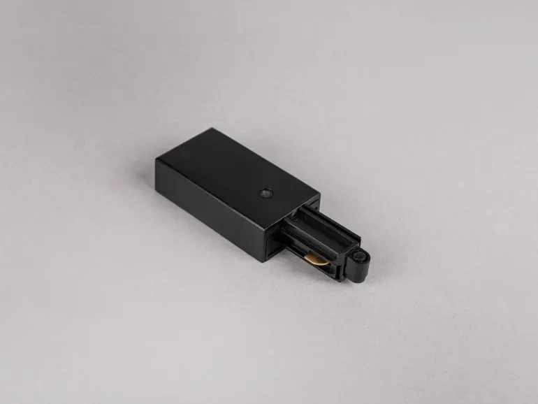 Oikeanpuoleinen musta liitäntä. Liitäntä on osa monipuolista kiskojärjestelmää Focus- ja Comfort-sarjan yksivaiheisille Hide-a-lite-tuotteille, joissa kukin osa myydään erikseen tarpeisiisi sopivana sekä kotiin että julkisiin tiloihin.