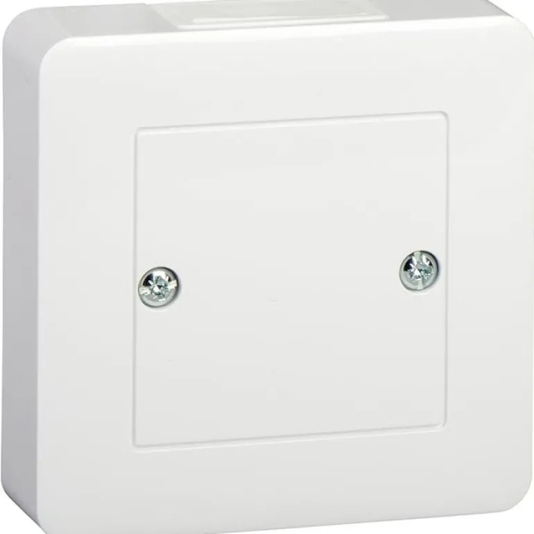 Valkoinen liitäntärasia, jossa on jännityksenpoistaja ja nipat kahdelle tuloliitännälle ja joka asennetaan kojerasian päälle (c/c 60 mm, myös IP44) tai pinta-asennetaan IP20-kokoonpanoon.
