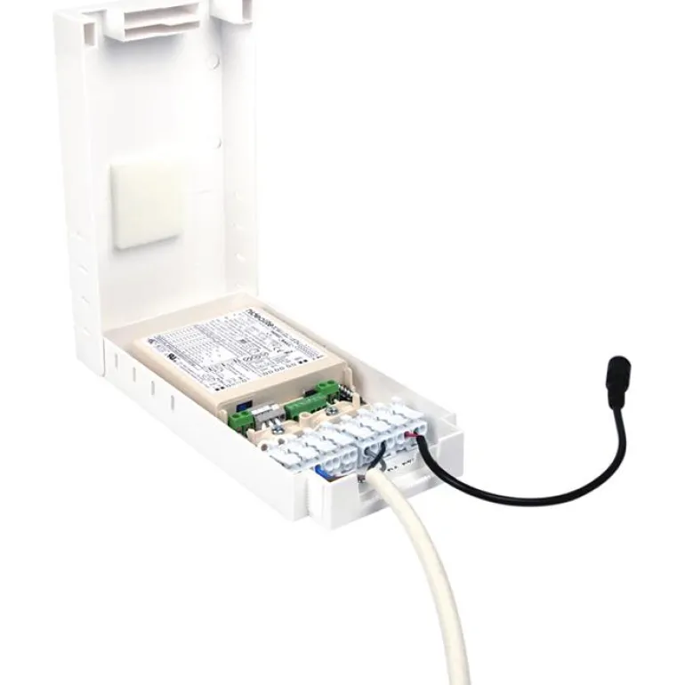 Hide-a-Lite Q-Box on vapaasti sijoitettava liitäntärasia sisäkäyttöön, halogeenivapaata muovia. Pikaliitäntärimoilla 8×0,5-2,5mm ohjaimen kytkentään/ketjutukseen. Soveltuu kytkentään ja ketjutukseen sekä ensiöpuolelle, että sekundääripuolelle valaistuksenohjaukseen ohjaimen ja valaisimien väliin. Helpottaa asennusta ja toimii kytkentäpisteenä, mutta myös piilottaa ohjaimen. Q-box soveltuu ensisijaisesti Jolly-ohjaimillemme ja asennus täysin työkaluton. Ruuviton vedonpoisto ja ketjutusmahdollisuus mahdollistavat huoltoystävällisen asennuksen.