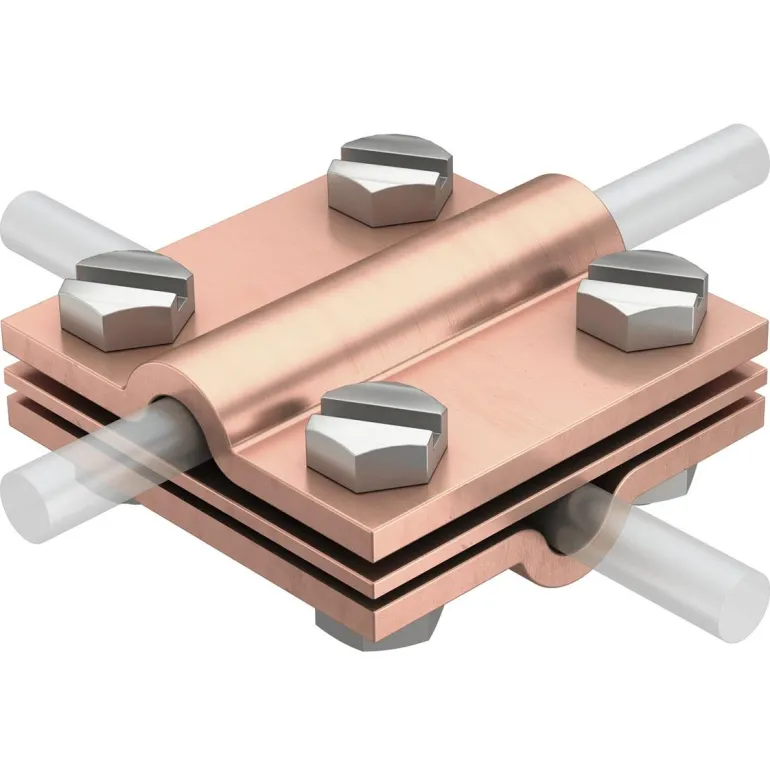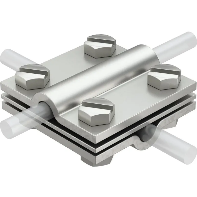 T-, ristikkäis- tai rinnakkaisliitäntään pyöröjohtimilla. Kuumasinkittyä terästä. Mukana välilevy.