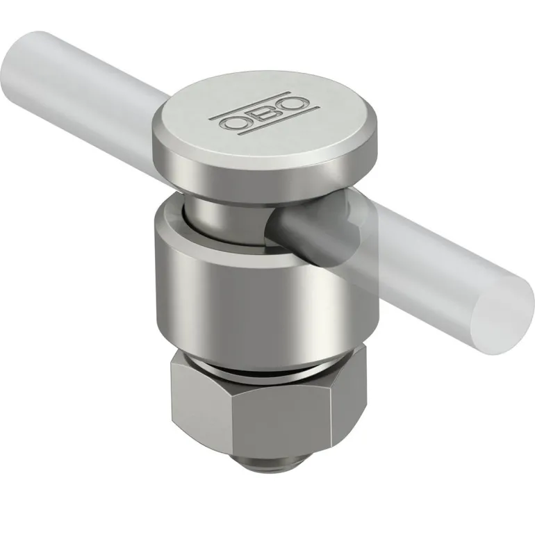 Ruostumattomasta teräksestä valmistettu pultti jossa reiät ø 8-10 mm:n pyöröjohtimen varalta.
