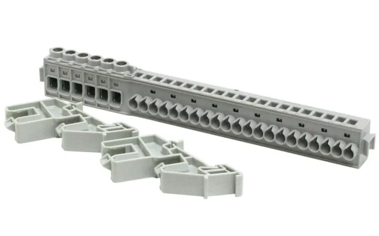 Pikaliittimet maadoitukseen ja nollalaitteisiin standardikeskuksissa. Mukana toimitetaan DIN-kiinnikkeet.