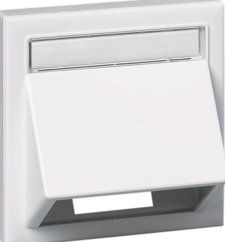 Napsautettava liitinrasia, jossa merkintäkilpi, merkintäikkuna ja asennuskehys seinäasennusta varten. Liitinlevy tilataan erikseen.