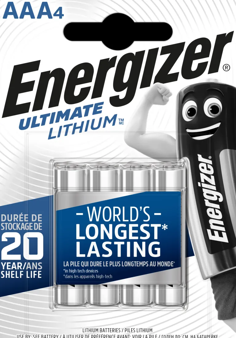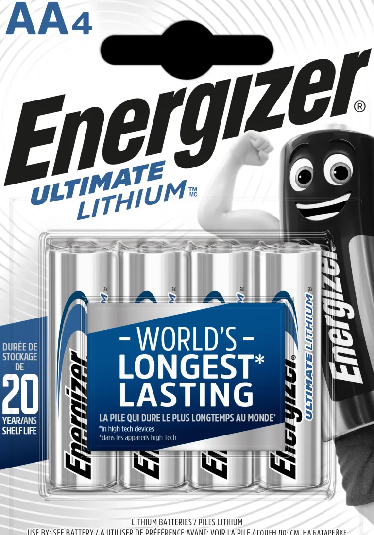 Energizer Ultimate Lithium on 1,5 V AA-litiumparisto, jolla on erittäin pitkä käyttöikä korkean teknologian sovelluksissa. Paristo kestää äärimmäisiä sääolosuhteita (-40 …+60 °C) ja on 33 % kevyempi kuin alkaliparistot. Toimitetaan 4 kpl:n pakkauksessa.