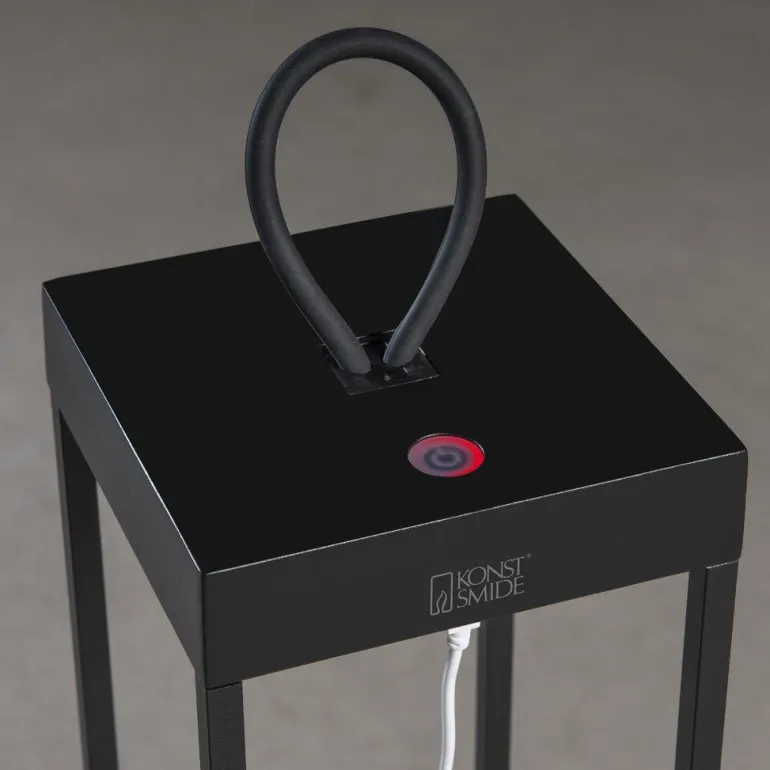 Tyylikäs koristevalaisin puukannelle tai patiolle mustalakattua alumiinia. Lyhty on 50 cm korkea, ladataan USB:n kautta ja voidaan himmentää haluttuun asteeseen sekä asettaa haluttuun asentoon.