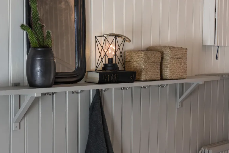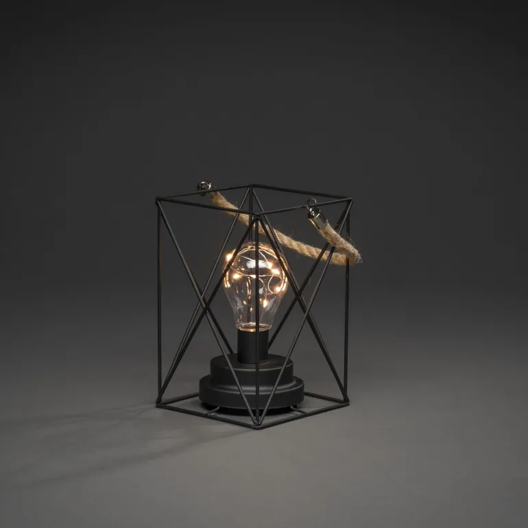 Konstsmide 1816-780 on neliömäinen lyhty metallia, jossa on 9 LEDiä (valon väri amber). 3xAA, ajastin 6 h.