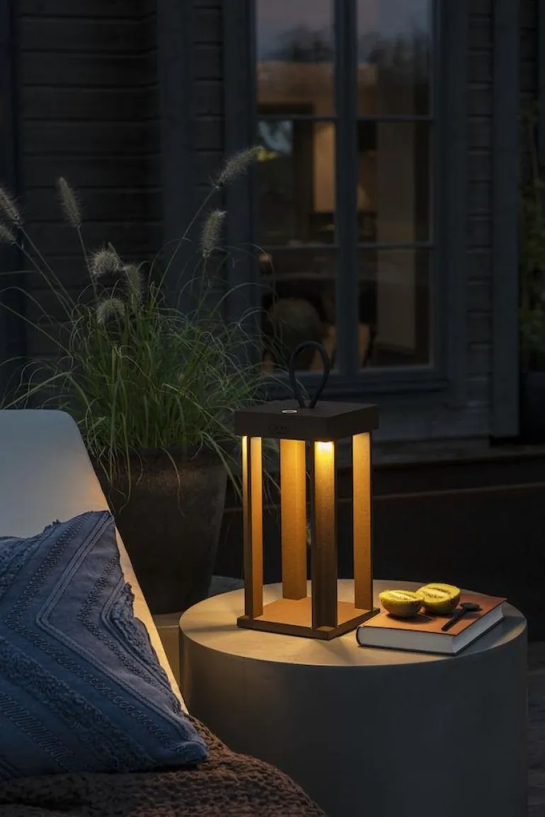 42 cm korkea musta alumiininen lyhtyvalaisin ulkokäyttöön. Lyhty on himmennettävä ja ladattavissa USB:llä.
