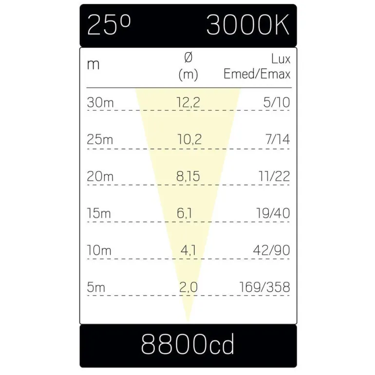 24 W: n maavalaisimet, 1950 lm, 3000K ja 25° sirontakulma. IP67, kytketään 230V: hen. Maksimipaine 1000 kg.