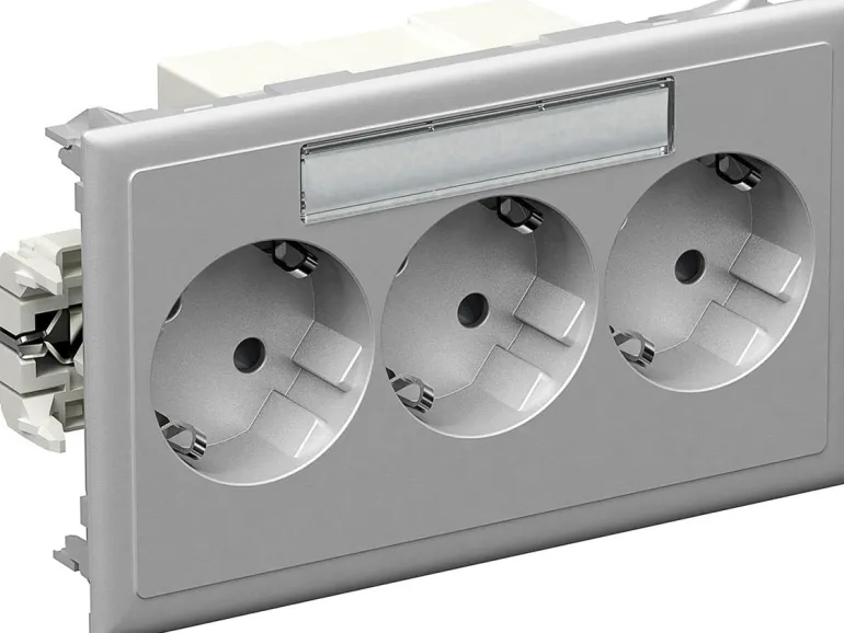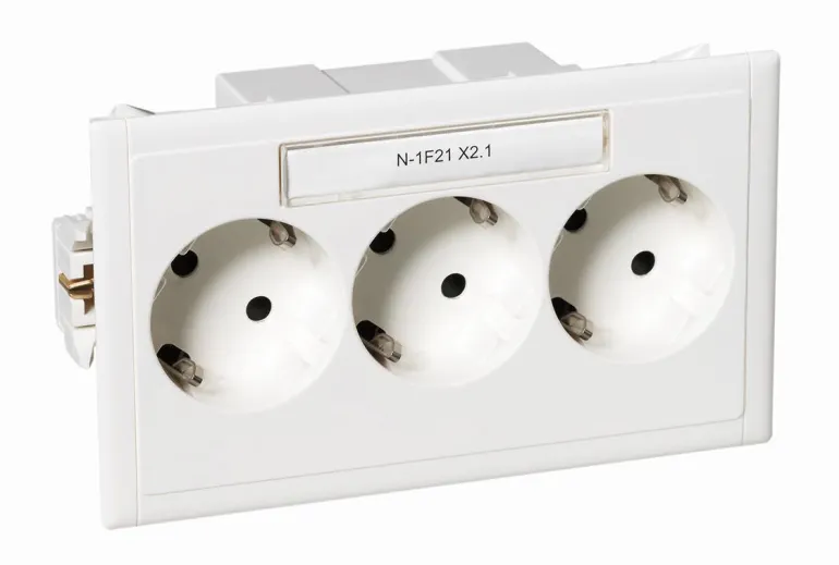 Master-pistorasia CYB 3-osainen, asennukseen Thorsmansin asennuskanaviin. Pistorasia asennetaan ilman rasiaa.