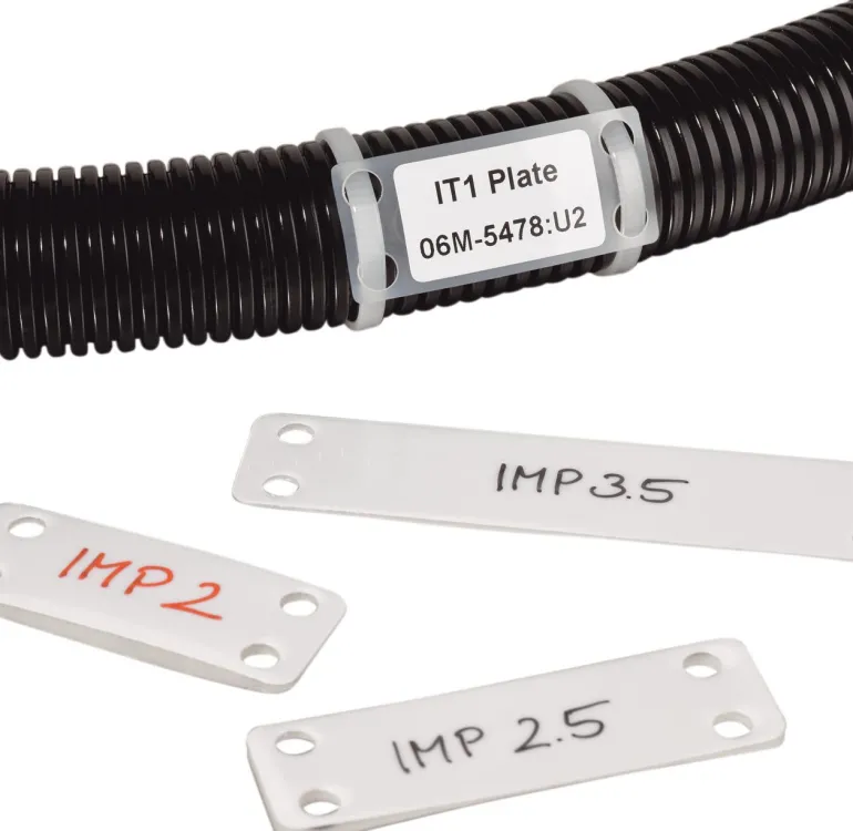 Merkintälevy suurten johtosarjojen tai tasaisten pintojen merkitsemistä varten. Merkitse levyt painetuilla etiketeillä tai T82-kynillä. Kiinnitä nippusiteillä tai niiteillä.